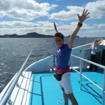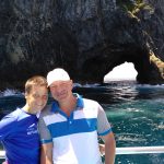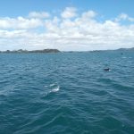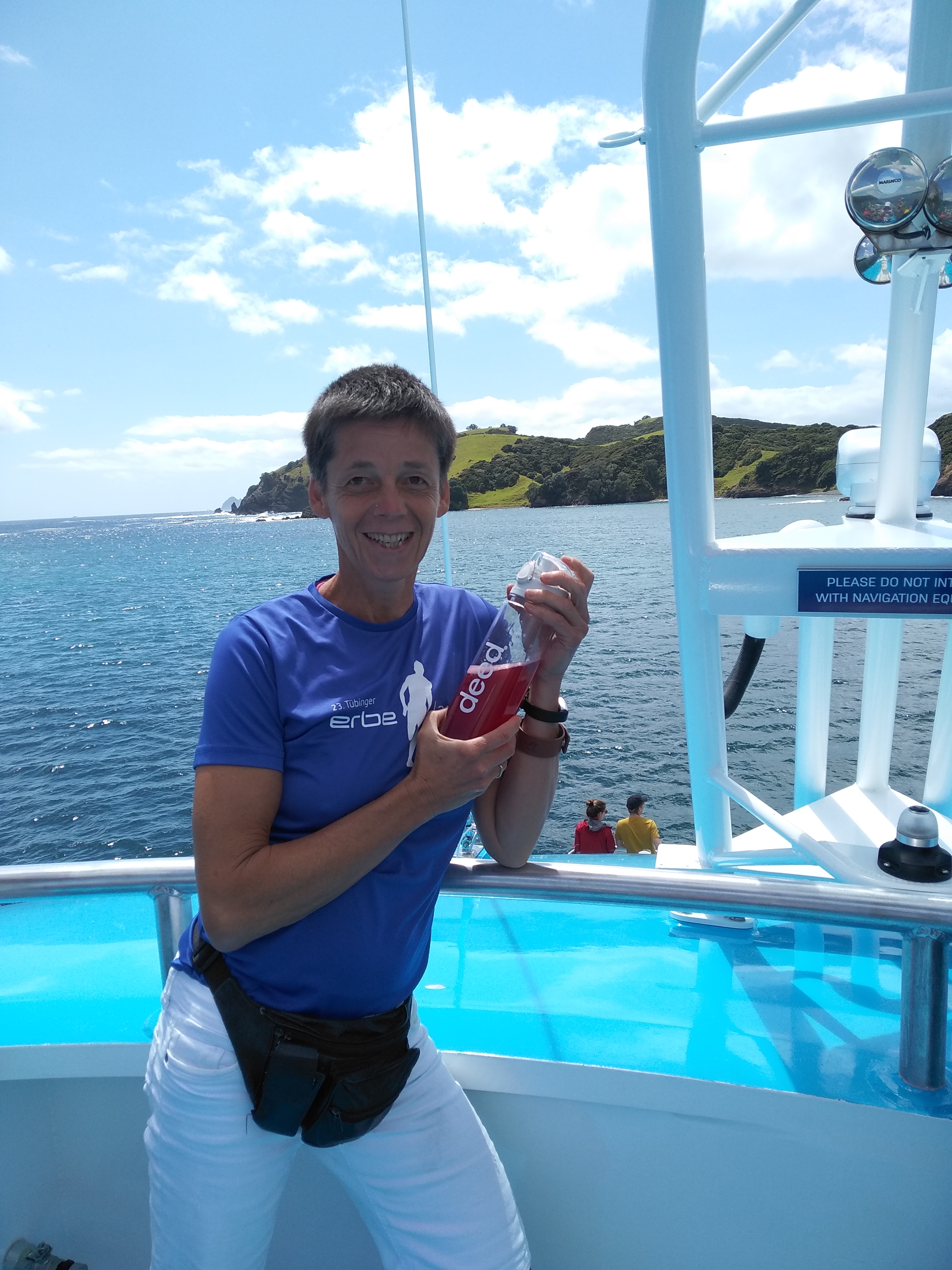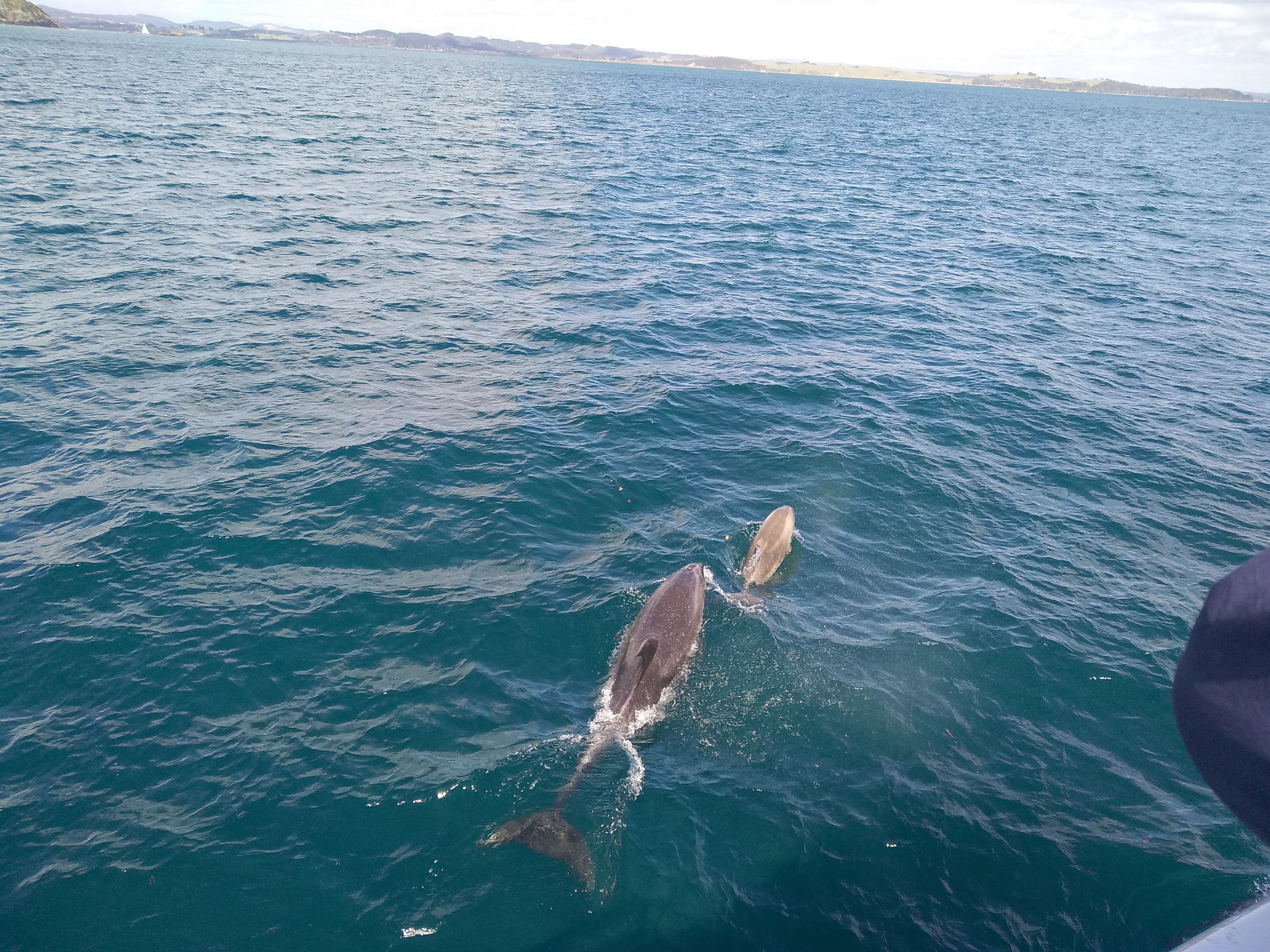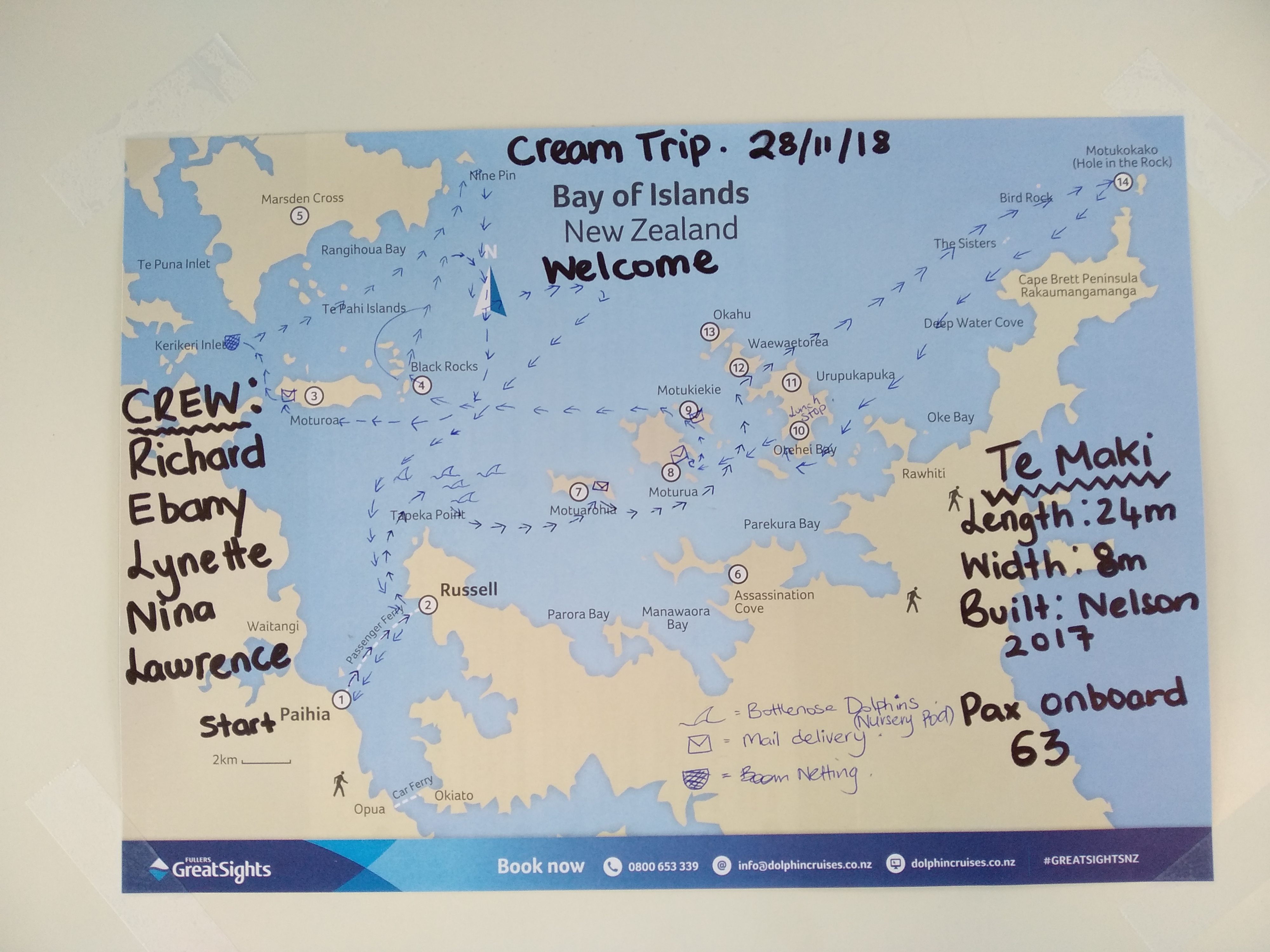 Diesen Sonnentag pur in Worte zu fassen, ist schier unmöglich und unsere Bilder sagen mehr als tausend Worte! Begleitet von Delphinen mal schnell, mal langsam durch die 144 Inseln zu „Katamaranen“ war unbeschreiblich schön. Eine nette Crew auf dem Schiff hat uns viel über die Geschichte der Region erzählt, wo 1769 James Cook landete, wo im 19. Jahrhundert die ersten Missionare keinen Erfolg hatten, die Maoris zu bekehren und wo Anfang des letzten Jahrhunderts ein findiger Neuseeländer die Idee hatte, aus der Versorgungslinie für die Inseln eine erste touristische Attraktion zu machen. Aufgrund dieser Tradition haben wir heute auch noch die Post vorbeigebracht an Inseln, die in Privatbesitz sind.