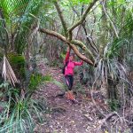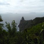 Am nächsten Morgen starten wir eine Wanderung, haben erst einen wunderschönen Blick zurück zum Ocean Beach und verschwinden kurz drauf in den Wolken. Es geht steil bergauf und bergab auf rutschigen Pfaden durch den dichten Urwald! Jetzt bloß nicht den Fuß verknacksen, hier oben ist es sehr einsam und keinerlei Handy-Empfang…, Respekt vor der Natur ist sehr wohl angesagt!