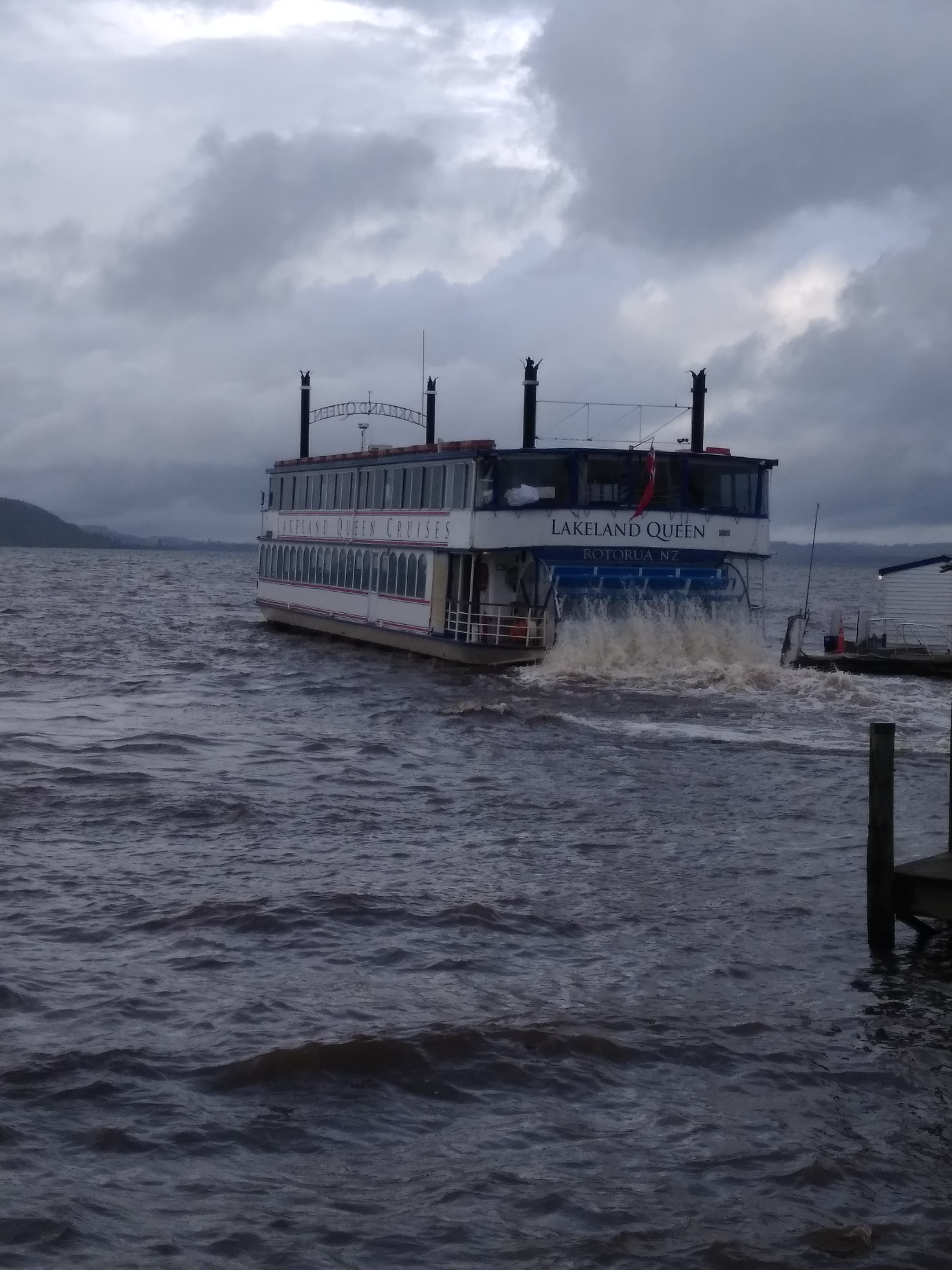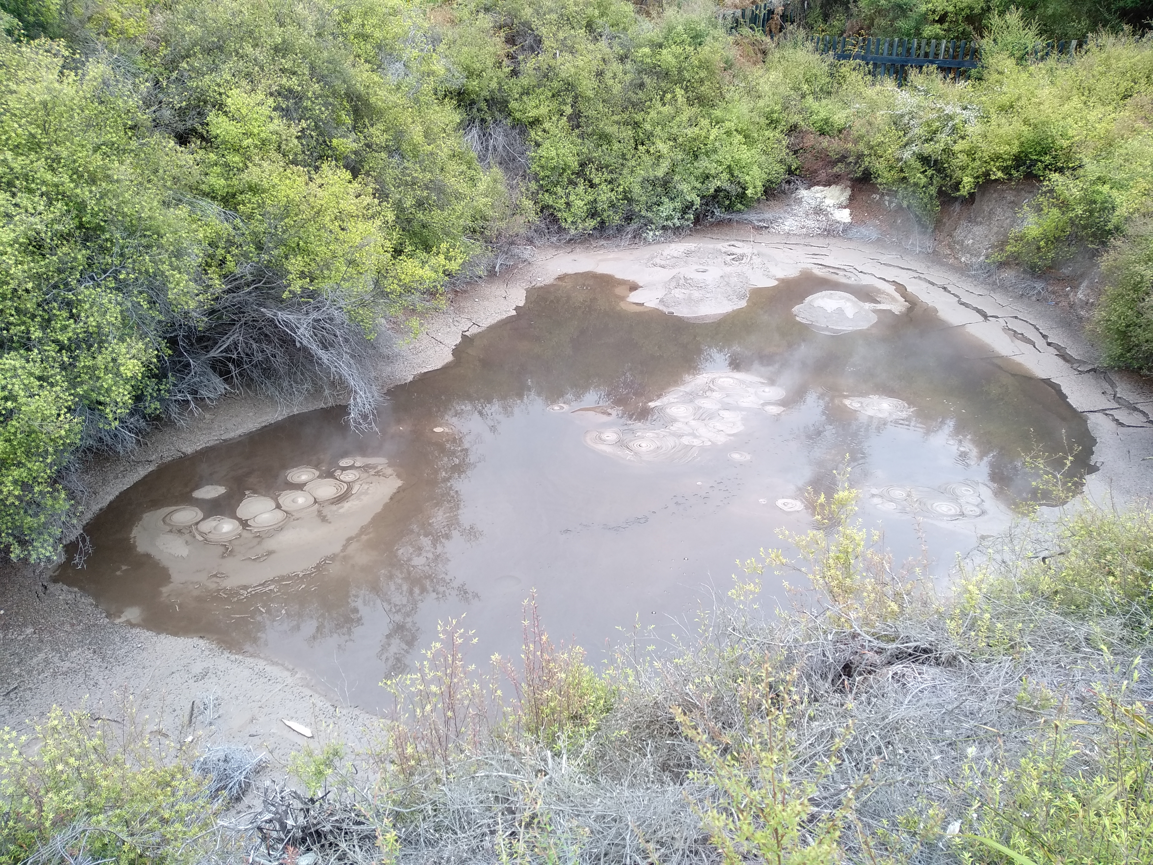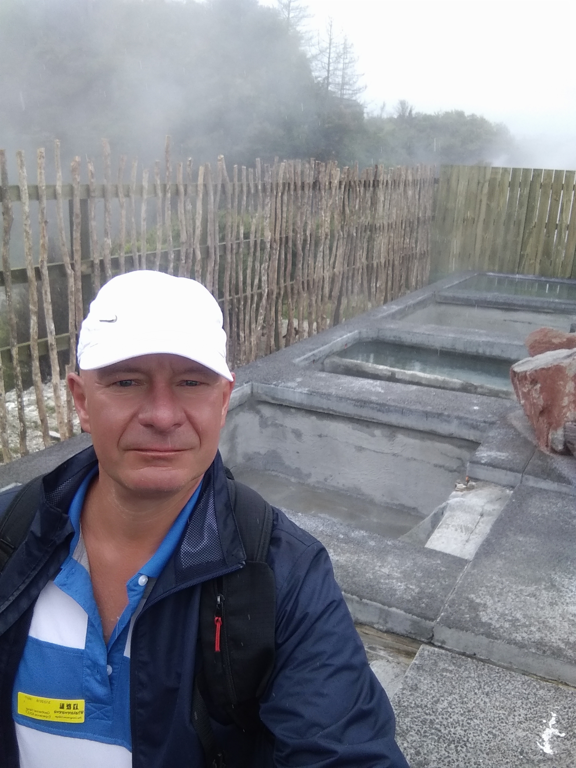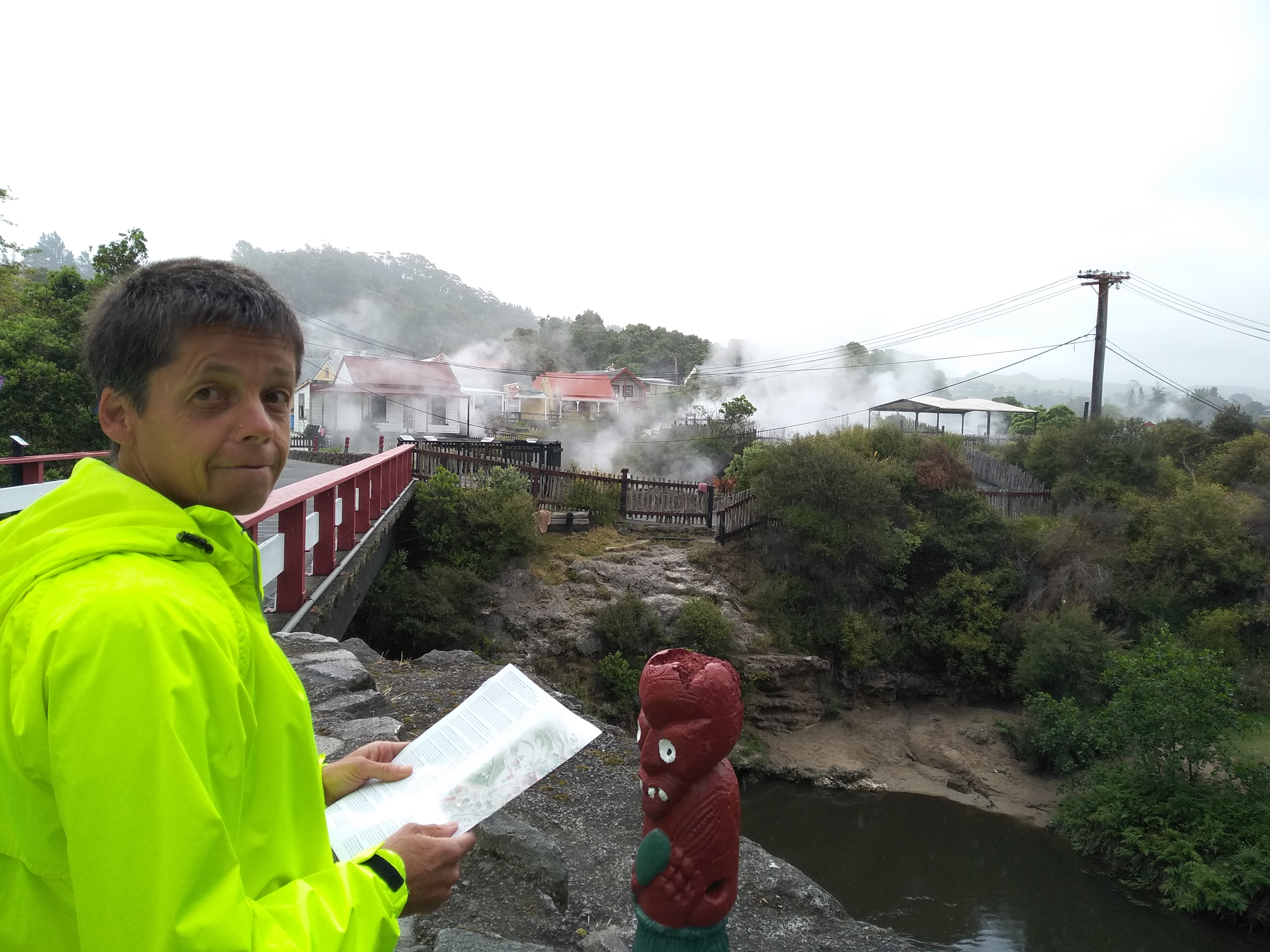 Nun sind wir in Rotorua, wo die Erde aus heißen Quellen blubbert und hohe Geysire spucken! Die Luftfeuchtigkeit von unten und oben ist sehr hoch!