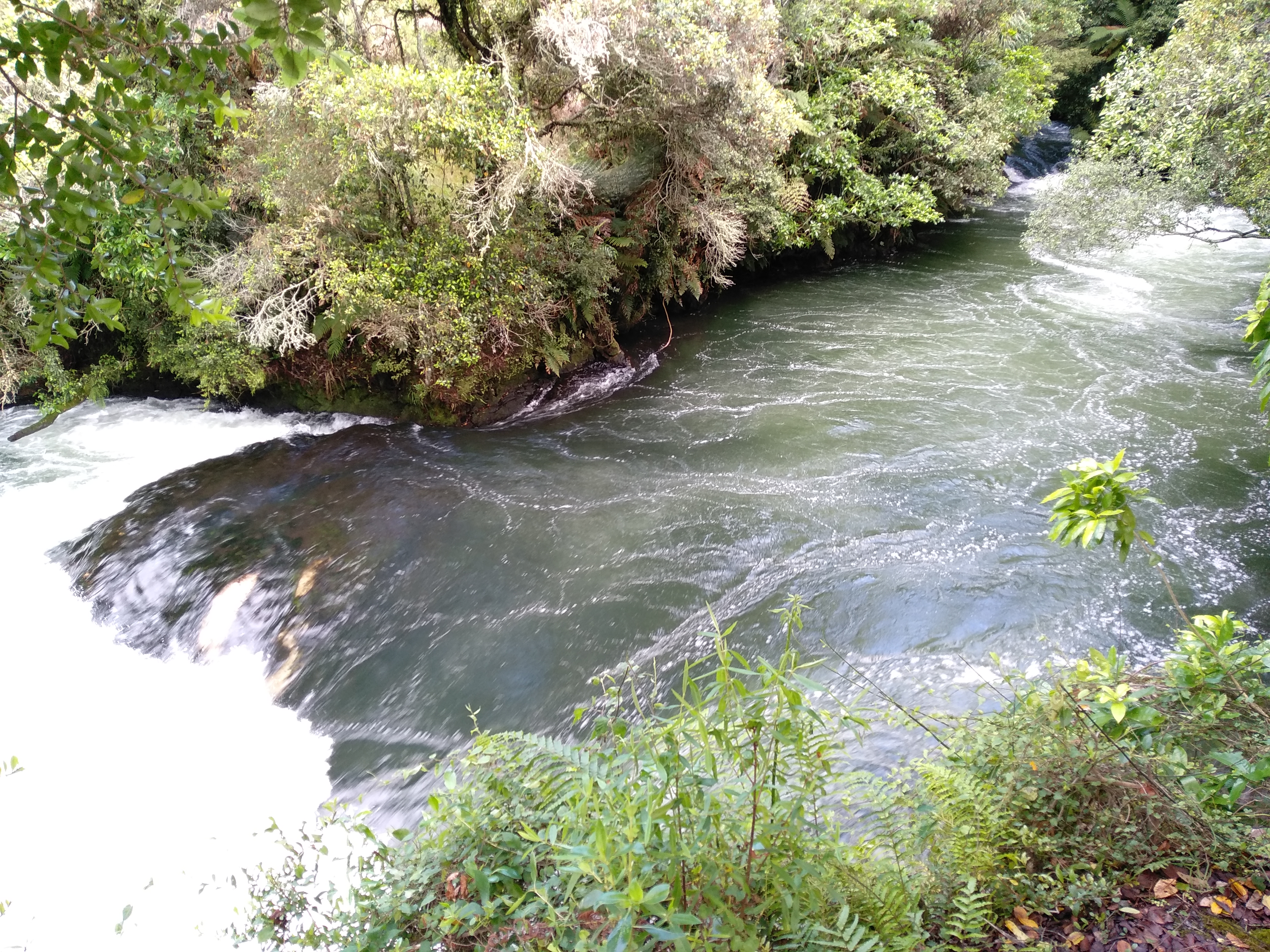 Abends stehen wir am Okere-Wasserfall und bewundern mutige Kajakfahrer, die sich die Stromschnellen runtertrauen.