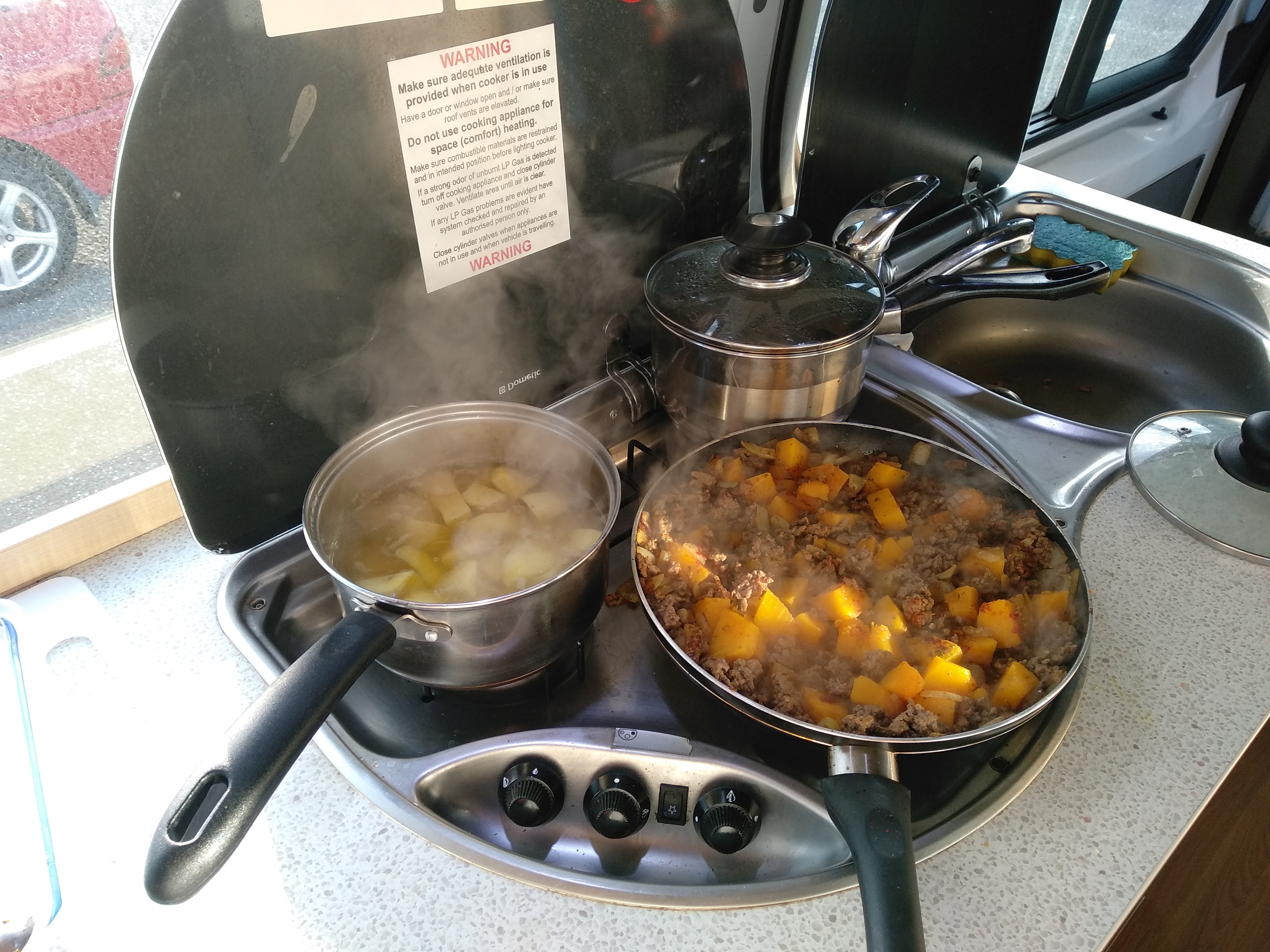 Ein leckerer Thunfischsalat mit viel Gemüse und ein guter Wein erfrischen uns nach einem kühlen Bad in der Bay. Inzwischen ist der Parkplatz am Yachthafen mit über 50 WoMos voll.