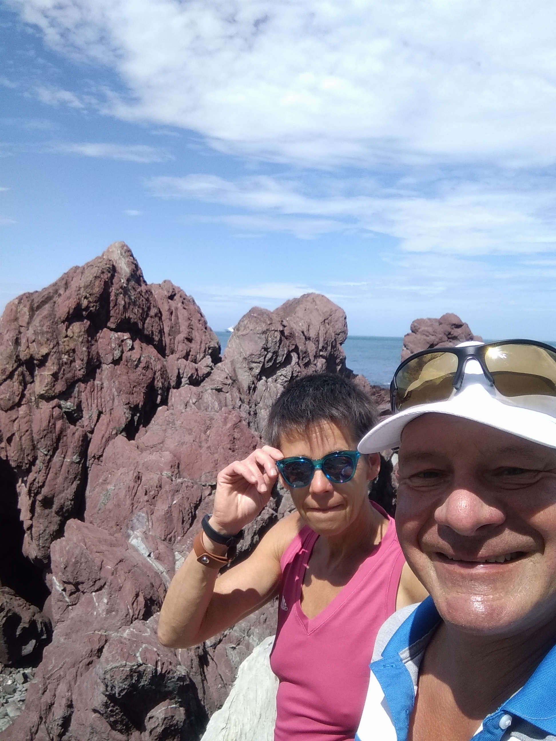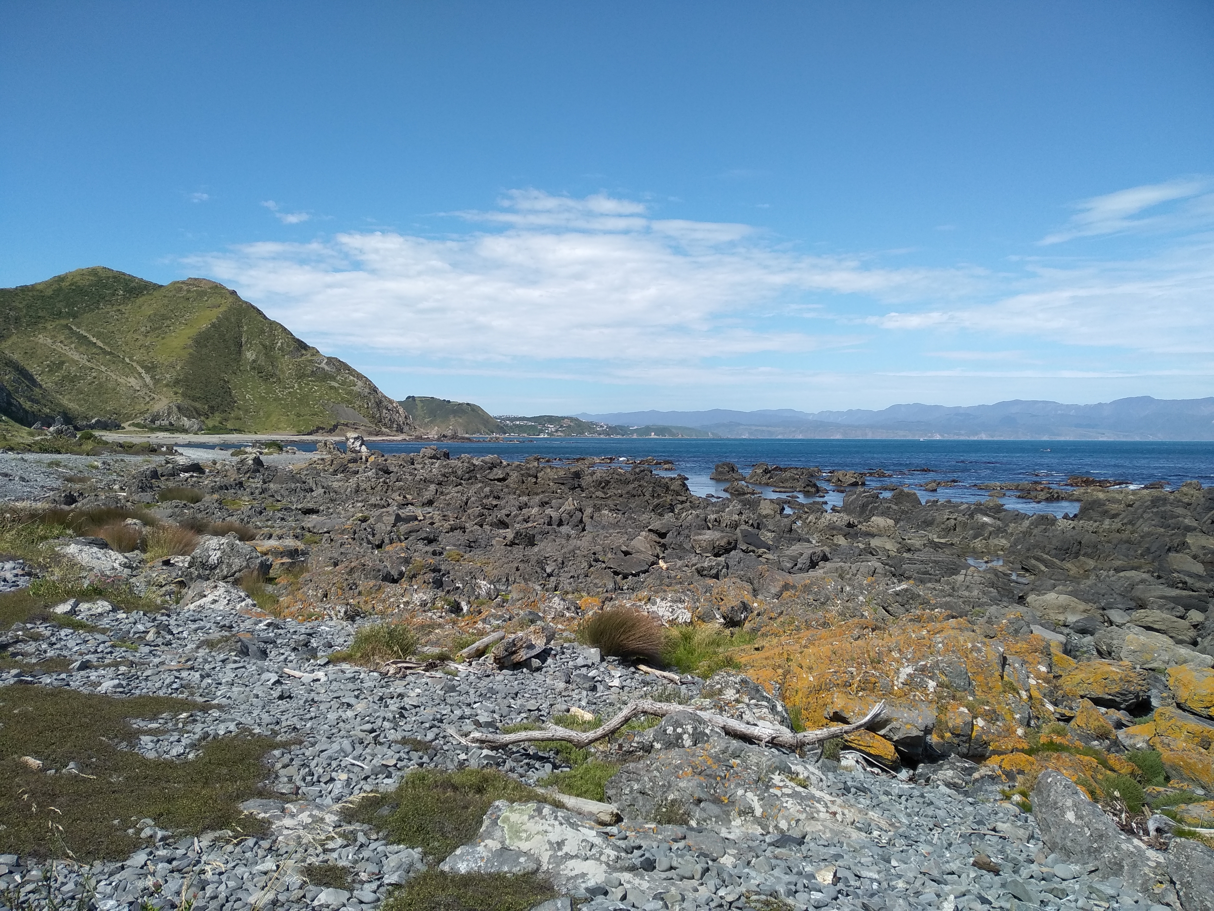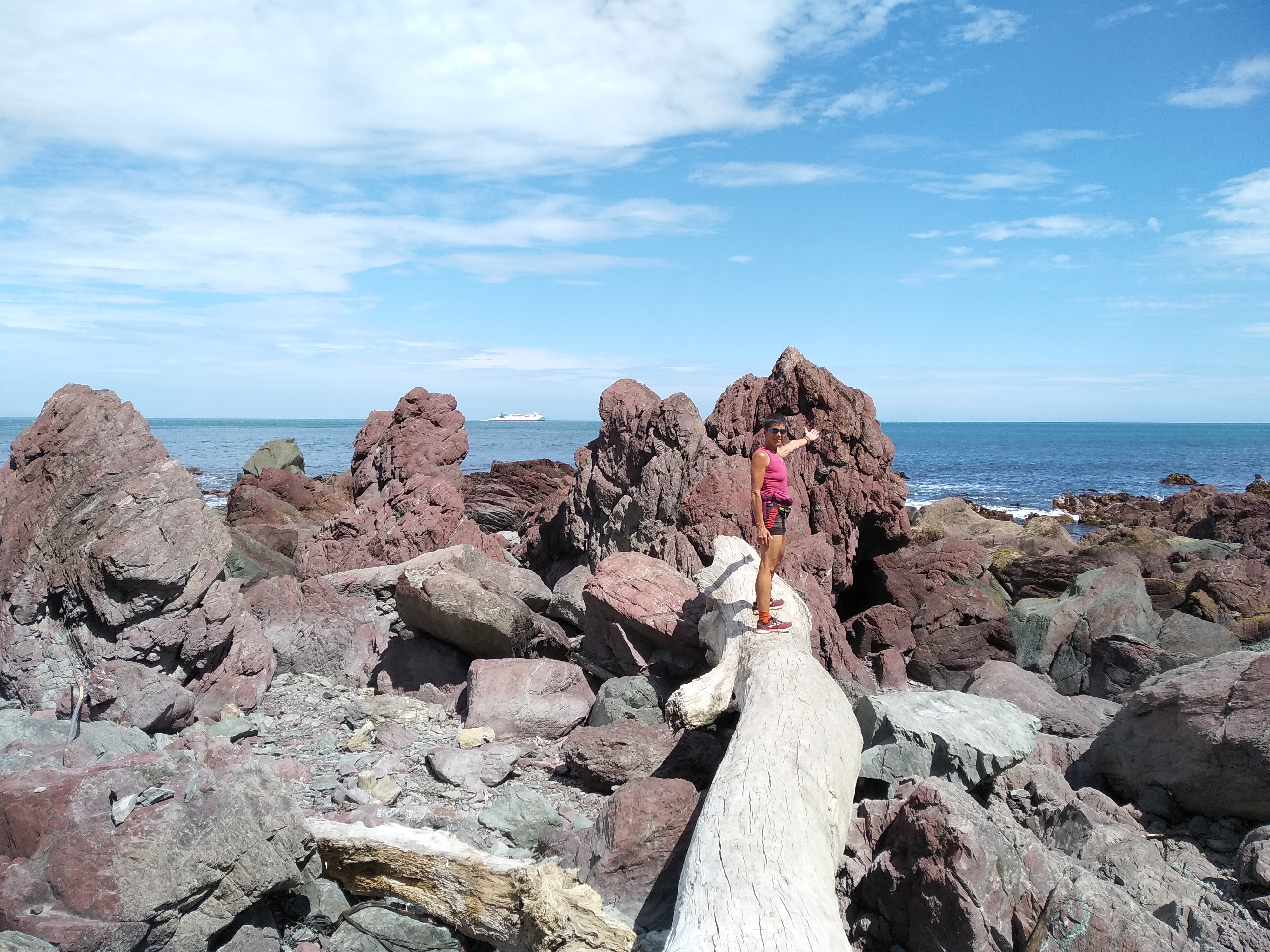 Am Sonntag haben wir uns mit meiner Bekanntschaft, Bill, vom Tübinger BachFest getroffen, waren zusammen in einem sehr „ausführlichen“ anglikanischen Gottesdienst in der St. Paul-Kirche mit netten Gesprächen beim anschl. Kirchenkaffee. Bill spielte Taxi für uns zurück zum Womo, wir brechen nachmittags auf zu den Red Rocks, einer sonnigen Küste im Süden mit Blick auf die großen Fährschiffe, auf einem davon dampften wir tags drauf genau hier vorbei – am Sinclair Head – zur Südinsel.