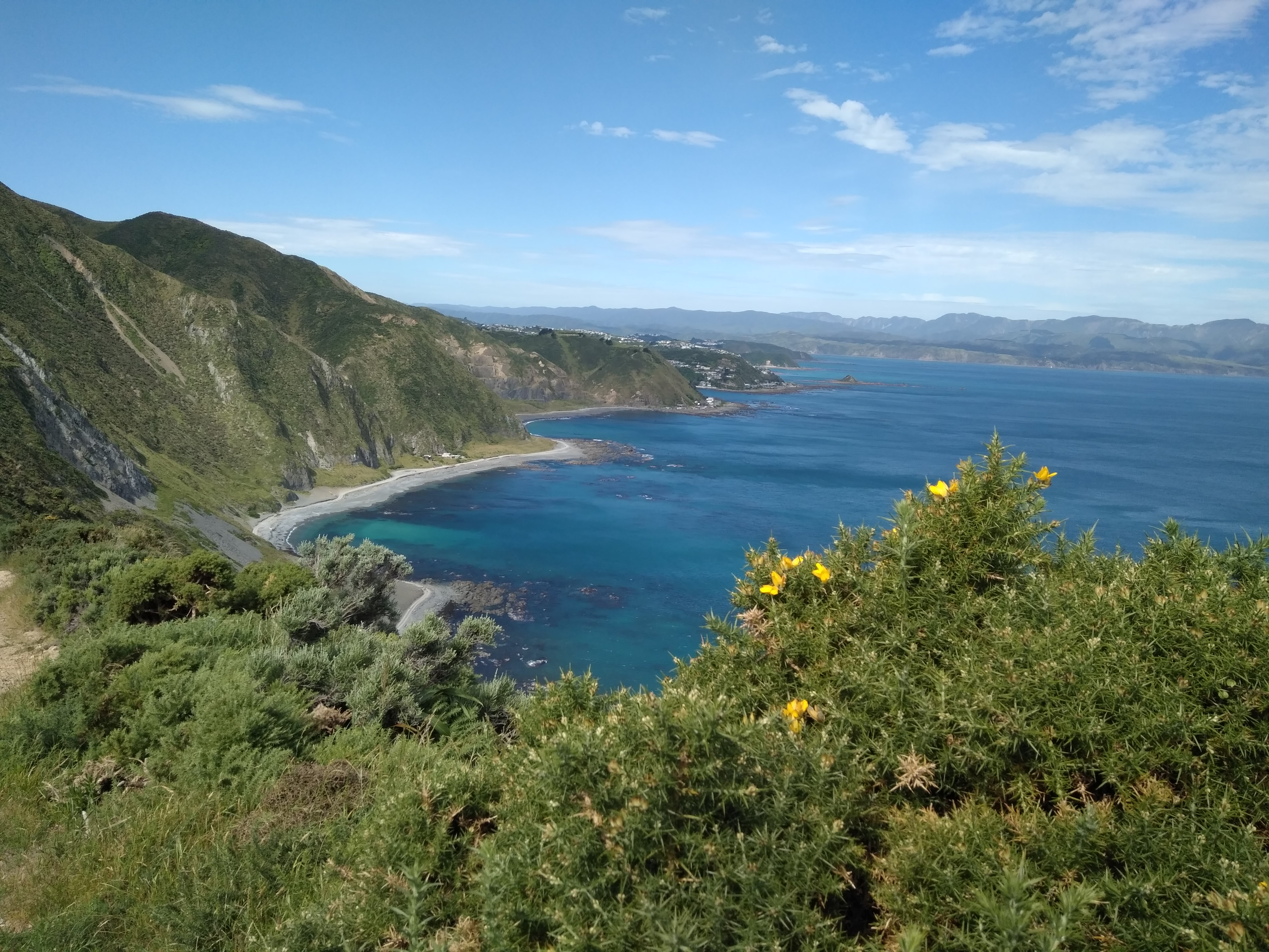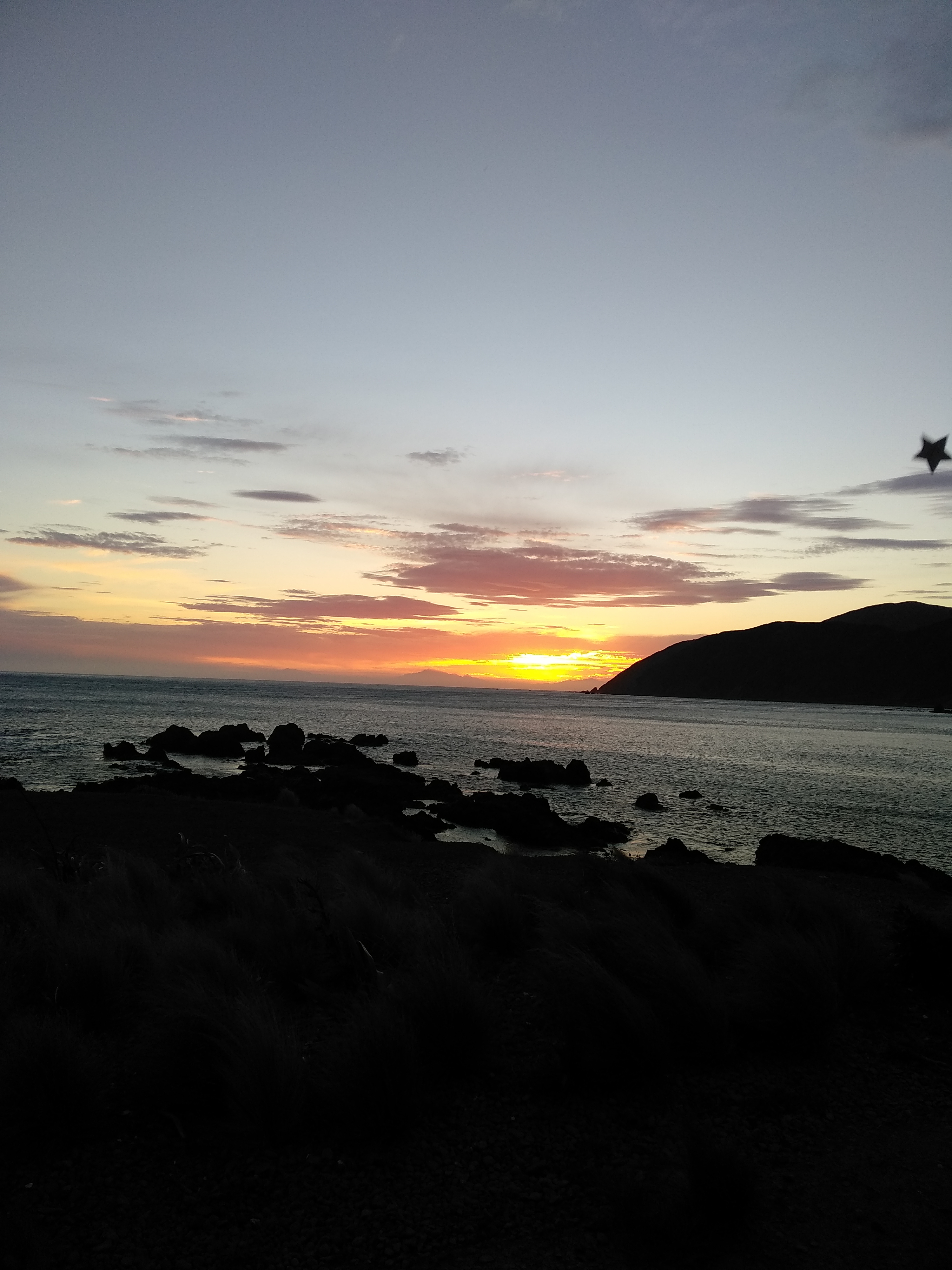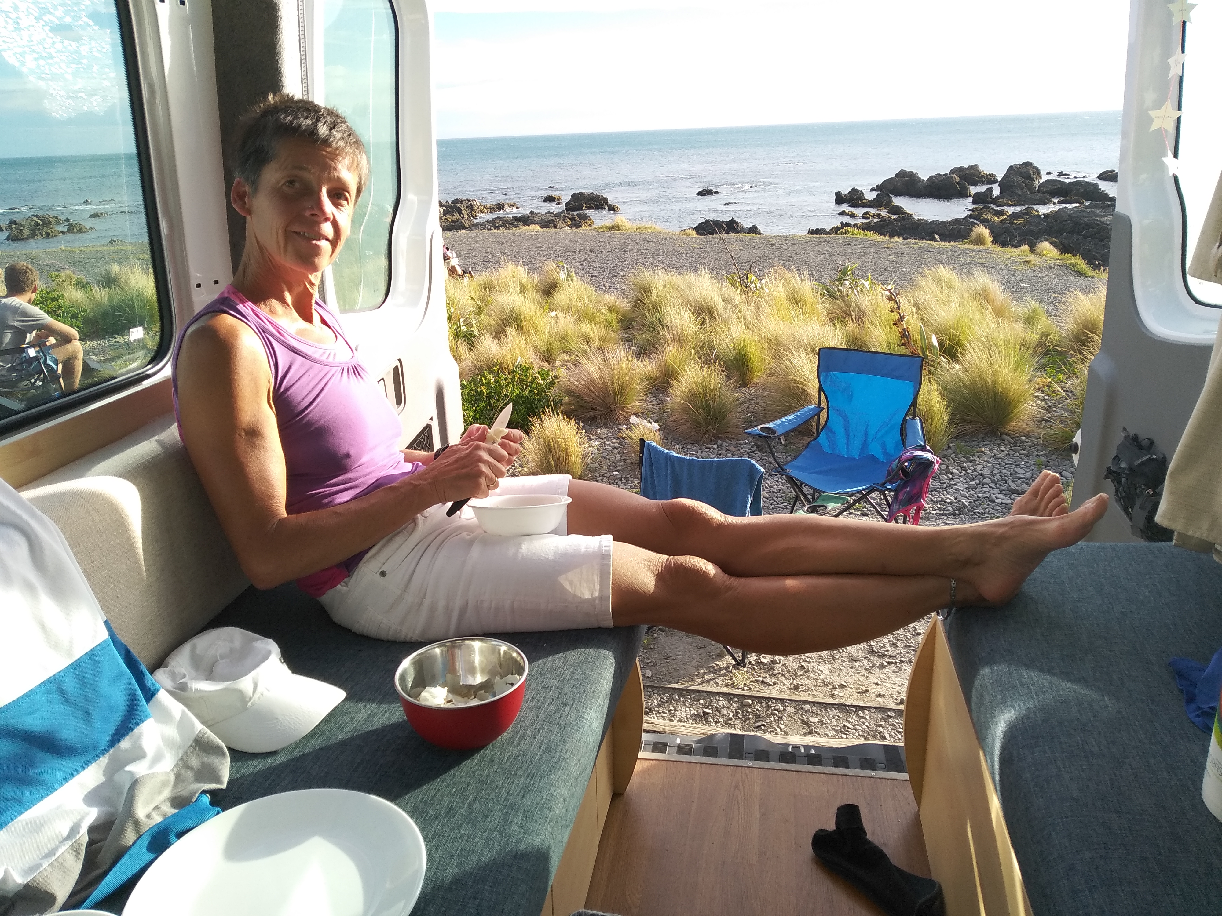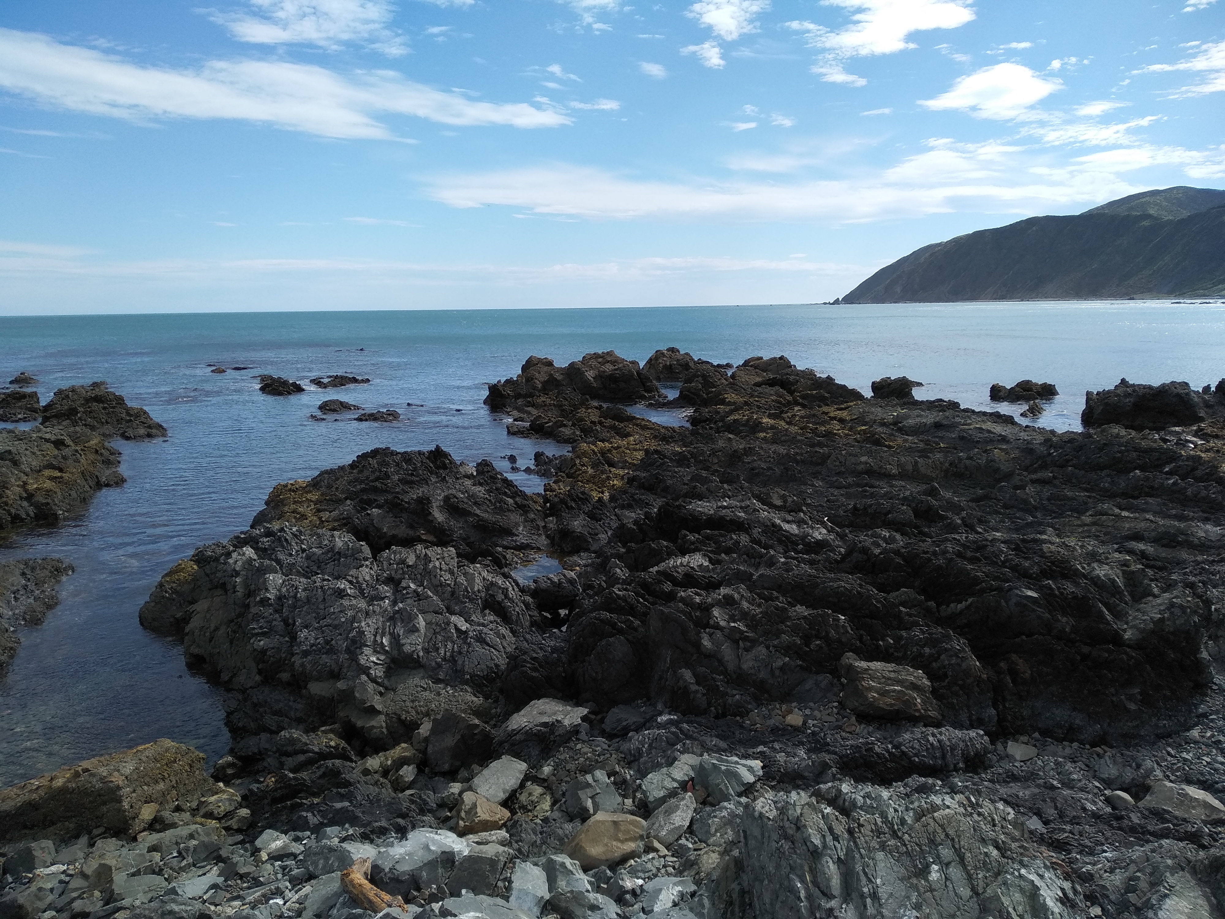 Am Sonntag haben wir uns mit meiner Bekanntschaft, Bill, vom Tübinger BachFest getroffen, waren zusammen in einem sehr „ausführlichen“ anglikanischen Gottesdienst in der St. Paul-Kirche mit netten Gesprächen beim anschl. Kirchenkaffee. Bill spielte Taxi für uns zurück zum Womo, wir brechen nachmittags auf zu den Red Rocks, einer sonnigen Küste im Süden mit Blick auf die großen Fährschiffe, auf einem davon dampften wir tags drauf genau hier vorbei – am Sinclair Head – zur Südinsel.