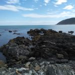 Am Sonntag haben wir uns mit meiner Bekanntschaft, Bill, vom Tübinger BachFest getroffen, waren zusammen in einem sehr „ausführlichen“ anglikanischen Gottesdienst in der St. Paul-Kirche mit netten Gesprächen beim anschl. Kirchenkaffee. Bill spielte Taxi für uns zurück zum Womo, wir brechen nachmittags auf zu den Red Rocks, einer sonnigen Küste im Süden mit Blick auf die großen Fährschiffe, auf einem davon dampften wir tags drauf genau hier vorbei – am Sinclair Head – zur Südinsel.