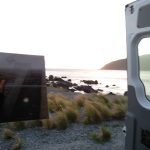 Weiter geht´s bei viel Regen unterwegs Richtung Wellington, mit einer Übernachtung an der Tasmanischen Küste mit wenig Wellen.