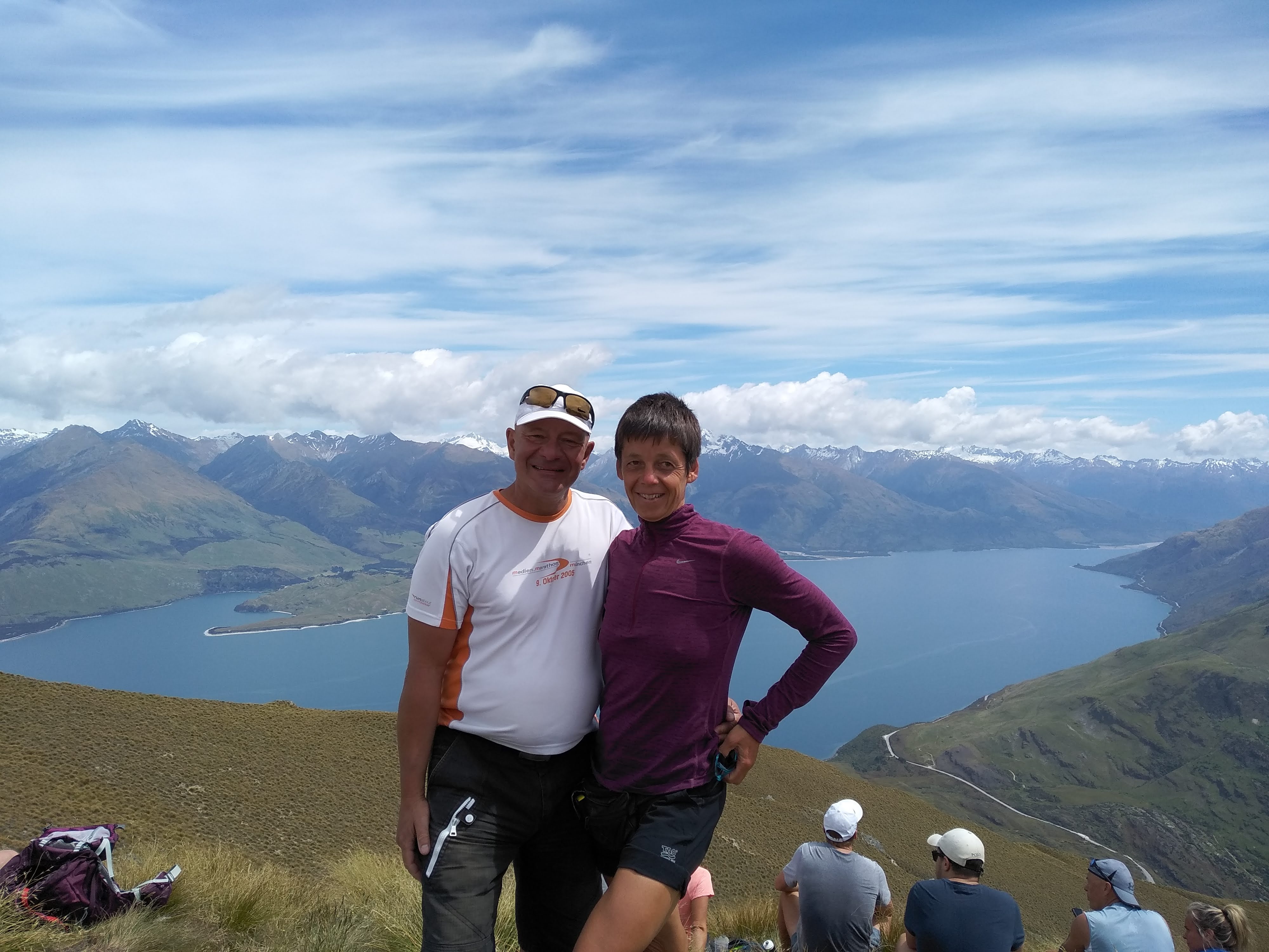 Vom großen Lake Wanaka aus machen wir eine 2,5 h Wanderung hoch zum Isthmus Peak mit traumhaftem Blick auf Lake Wanaka und den daneben liegenden Lake Hawea bei gutem Wetter, aber nicht zu heiß. Gilla joggt runter und radelt weiter bis zum Einkauf in Wanaka, wo wir uns wiedertreffen.
