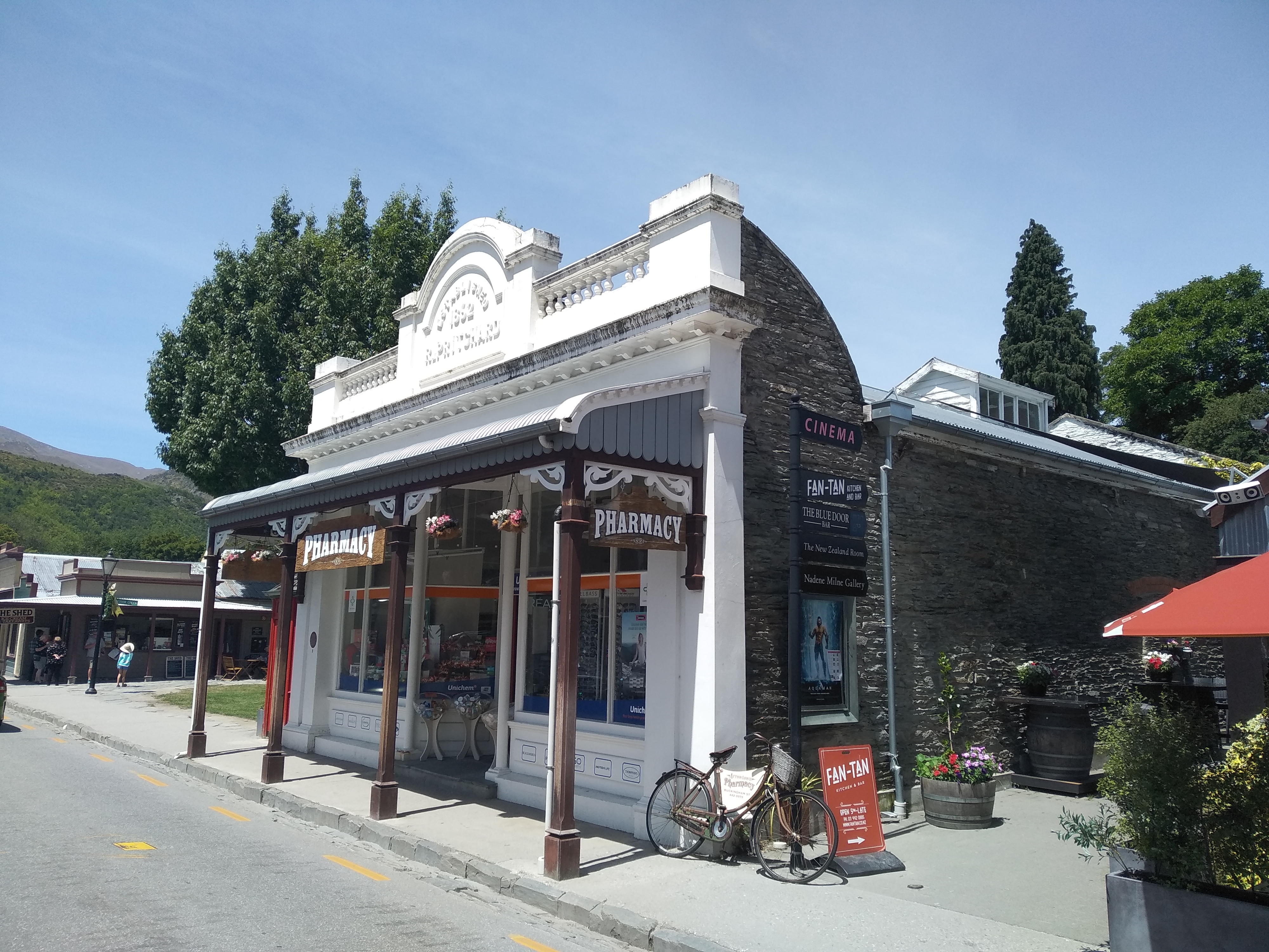 Danach erreichen wir die Wiege des Bungee-Jumpings, die Kawarau-Bridge, und schauen ein Weilchen zu, ohne selber Lust zu bekommen…, Gilla entdeckt den Queenstown-Bike-Trail und radelt ihn weiter bis zur Goldgräber-Touri-Stadt Arrowtown. Das glatte Gegenteil vom einsamen Wilderness-Trail an der Westküste, hier radelt wohl halb Neuseeland heute? In Arrowtown lädt die Flaniermeile mit Häusern vom Goldrush zu Fish bzw. einem Eis (wer was gegessen hat, ist euch ja wohl klar…?) eh wir die uralten Hütten der aus China angeworbenen aber nicht willkommenen Goldgräber mit Schaudern betrachten und betreten, winzige Hütten in und an die Felswand gebaut, furchtbar primitiv! An der Touri-Info haben sie uns in unserer Idee bestärkt ganz oben auf dem nahegelegenen Pass zu übernachten, Gilla radelt die 700 Höhenmeter zum Teil steil hoch, bekommt noch nette Hilfe von einem Australier, als der Lenker sich lockert und einen Imbus-Schlüssel braucht, und freut sich oben auf ein nettes Willkommen, kühles Bier und einen leckeren Lammfleischburger zum Abendessen mit tollem Blick auf das abendlich erleuchtete Queenstown. Der Abend endet noch in großem Gelächter, als Martin vorschlägt, dass seine „Gazelle“ doch sicher am nächsten Morgen erst mal zum Gipfel joggen möchte, um sich danach wie auf „Adelers Fittichen“ per Bike nach unten fliegen bis zum Lake Hayes zum Frühstücken!