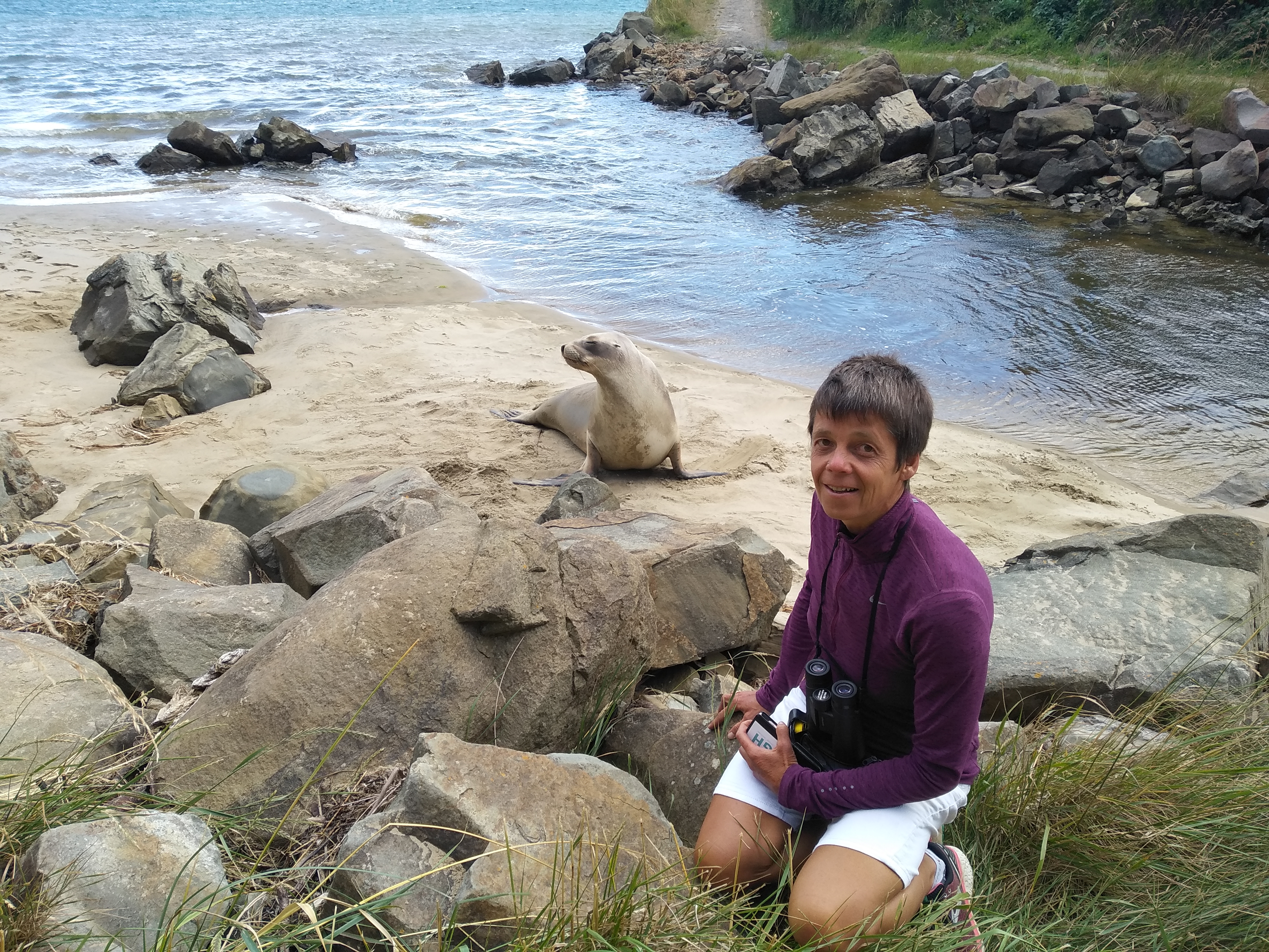 Auch auf unserer Tour an der Südküste entlang, hatten wir immer wieder das Glück, Seelöwen und Robben zu sehen und in der Curio-Bay sogar einen der sehr seltenen großen Gelbaugenpinguine. Diese Bay zusammen mit der direkt danebenliegenden Porpoise-Bay waren mal wieder ein absoluter Höhepunkt. Es war sonnig und stürmisch und es gab es gigantisches Wellenschauspiel, wir standen mit dem Womo direkt auf der schmalen Stelle, von der aus wir Sicht in beide Bays hatten, dieses Schauspiel der unbändigen Natur war einfach atemberaubend!