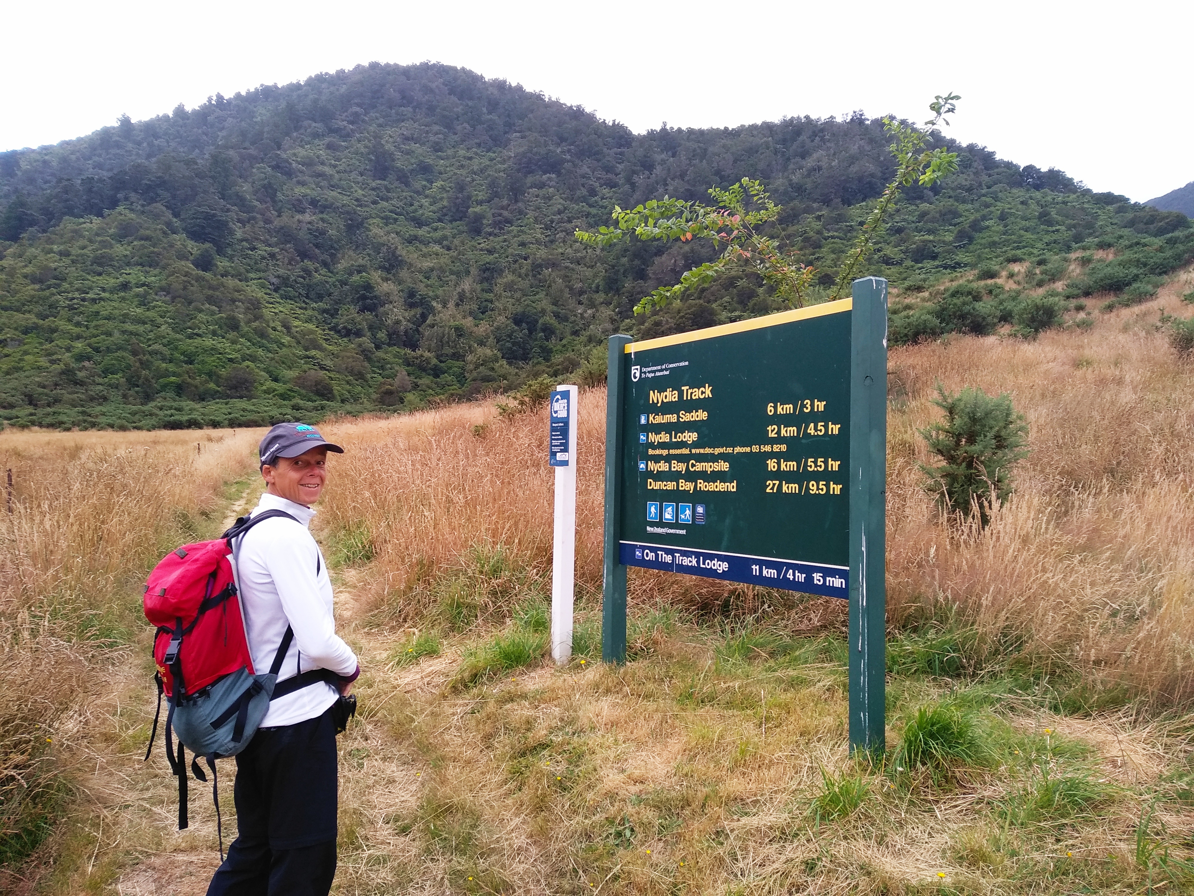 Morgens sind wir schon zum Sonnenaufgang über dem Meer wach, aufgestanden und bereit für ein erstes Bad! Hui, das hat lange gedauert, bis wir im Bett wieder warm geworden sind! Aber im Laufe des Tages haben wir noch genug Hitze gehabt bei der langen Fahrt in den Norden bis zu den Marlborough Sounds in Havelock. Dank einer sehr netten Dame im I-site haben wir eine supergute Entscheidung gefällt, wir sind nämlich noch die 18 km Gravel-Road mit Womo und Fahrrad zum Startpunkt für den Nydia Track gefahren und haben dort wieder eine Sturm-nacht verbracht.